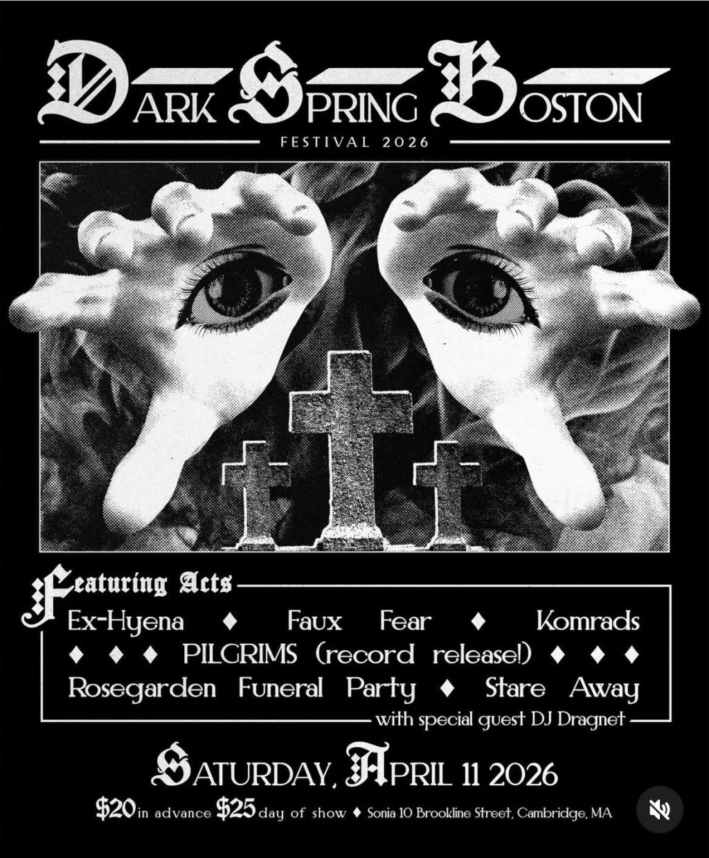 Upcoming shows Ex-Hyena – Faux Fear – Komrads – Pilgrims – Rosegarden Funeral Party @ Sonia 1 min read 13 hours ago Bill Just 🎫 Dark Spring Festival Tickets – TicketWeb Continue Reading Previous We are Space Horses – At the Hands of Man – Strawberry Coffin – The Freqs @ O’Brien’sNext Hedge – Megan From Work – Little Low – Oh The Humanity @ Deepcuts